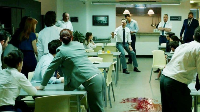 Corporate horror, not to be confused with… well you know. Belko is an enormous soulless industrialized people-storage and application unit, what we refer to colloquially as a human resource company in Columbia. Looks great, you can’t pay me enough. It’s basically a penal colony with snack machines. You know the kinda place I’m talking about, their chief product is “spreadsheets.” Everyone there has a favorite character in “Office Space.” There’s a “Pam” in every department. Sorry if this describes your situation… as in I’m sorry you live like this, not as in I’m sorry to offend you. Consider this tough love. Now go to trade school!