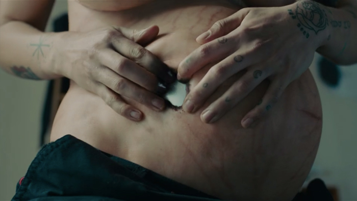 Titane, it’s French for “Titanium,” which is the sort of plate the lead character (Alexia) has fused to her skull. Neat, right? We’re learning things today! Stick with us, in no time you’ll be able to order a titanium plate on your skull in Montreal, all by yourself!