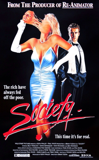 FYI, while I’m thinking about it, there are plenty of options where you can stream Society, including an option to watch it free on Sling. If I could make a recommendation – just pay for it. When you watch it for free it’s heavily-censored. 80’s-style “Bleeps” in place of dirty words, blurs over anything remotely sexy, like butts in swimsuits. For three bucks on Vudu (or “Slaptastic” or whatever they call it now) you can just watch it like a normal movie rather than a censored-for-80’s-television version. Plus, if you pause it for a moment and go off to make poops, when you get back to it the Sling player will kick you off and you’ll have to start the movie all over again and then fast-forward to where you left off, and that’s just super. No one should be punished for making poops. They should only be punished for where they leave those poops.