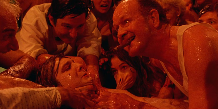 Halfway through the movie there are no real surprises, though something is definitely “off” in every other scene. “How do you like your tea? With milk? Sugar? Or would you like me to pee in it?” Rich Kid is being tipped off about a conspiracy or some sort and is trying to track it down. That said, the movie is still not really knocking my socks off. Rich Kid is either onto something or he’s just hallucinating everything, and everyone is sweaty all the time.
