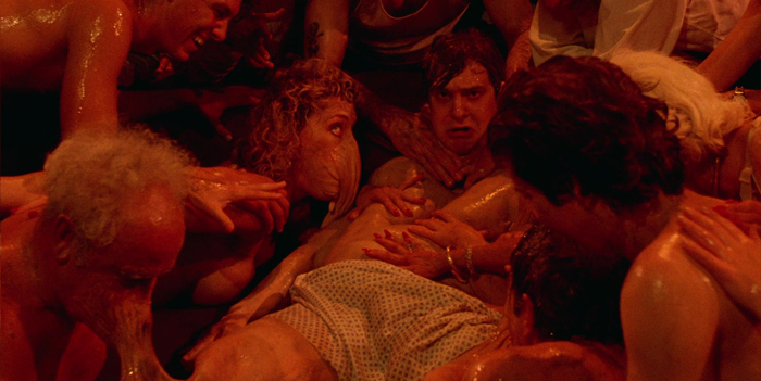The first inkling that this movie isn’t going to be a normal affair is the first scene. A rich girl is getting dressed for a party or something while her rich kid brother plays basketball outside… all normal stuff, save for a small bronze sculpture of a dude slobbing his own knob on her dressing table. Wait… what?!?! If you blink you’ll miss it, seems almost Easter Eggy, but there it is. The first of a bunch of randomly weird shit scattered about this flick.