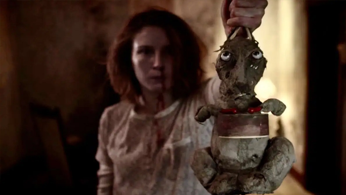 Next day, the house is no less creepy, and the girl in the house is no longer catatonic, but that’s no comfort because she’s armed with a crossbow. Super awesome, I’m locked into this harness with a chain that leads to the basement (hashtag foreshadowing) in a creepy catboxy house on a remote island, and my only company is a haunted toy bunny and a crazy chick armed with a crossbow. Now, how much again is 200 pounds in the late 60s? Unless 200 GBP is close to 40 thousand American dollars, I’d say the beardy guy made some very bad life choices. Really should figure out a way to slip the harness, grab the bunny and paddle to shore, and live a happy life just Scott and his scary bunny.