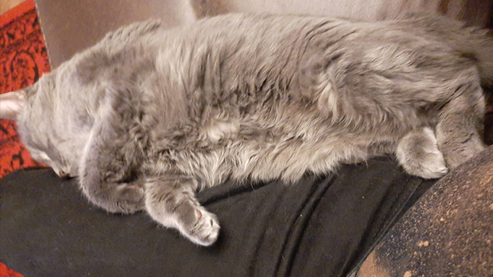 Oh and did I forget to mention? He’s chained to the house with this massive leather and iron body harness attached to the foundation with a long and heavy chain and a padlock the size of your face.