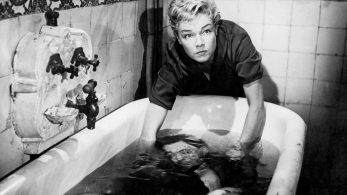 Les Diaboliques is a psychological horror filmed noir-style, in black and white. It’s in French, so yeah – you’re gonna have to read your movie. Clouzot’s wife Vera recommended he read the book “She Who Was No More” and by the morning after he optioned the rights to make it into a movie. He changed up a few things in the story, not the least of which being that he changed the gender of the killers so that his wife could have a leading role in the film (what a guy!). Side note, Vera played a woman with a heart condition in this movie, but would herself develop a severe heart condition around this time, from which she would die only five years later.