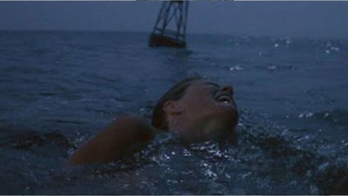 There’s the opening scene in Jaws, a drunken skinny dip in the dark and quiet calm of a beach at night, when suddenly she is attacked and eaten by a wild animal she can neither see nor run away from. That terrified rapid breathing after she gets bitten the second time? It still makes the hairs on my arms stand up!